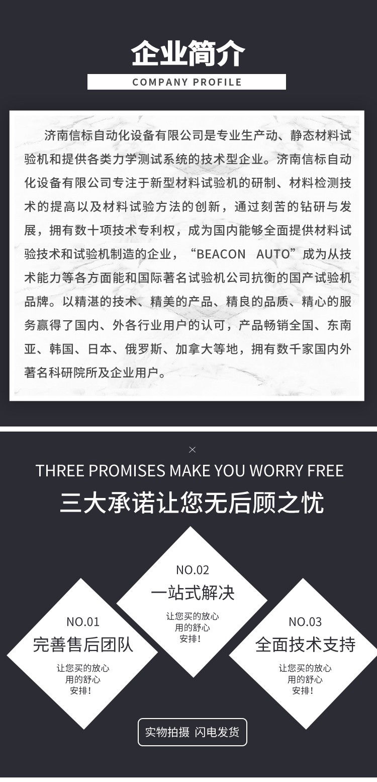 濟(jì)南信標(biāo)自動化設(shè)備有限公司主要生產(chǎn):動靜態(tài)萬能疲勞試驗(yàn)機(jī),接骨板彎曲試驗(yàn)機(jī),縫合線拉伸疲勞試驗(yàn)機(jī),髖膝關(guān)節(jié)磨損試驗(yàn)機(jī),電子萬能試驗(yàn)機(jī)、液壓萬能試驗(yàn)機(jī)、巖石三軸、四軸,電液拉力試驗(yàn)機(jī),材料試驗(yàn)機(jī),高低溫蠕變,高低頻疲勞,拉伸、扭轉(zhuǎn)、杯突等二十多個系列兩千多個的品種。