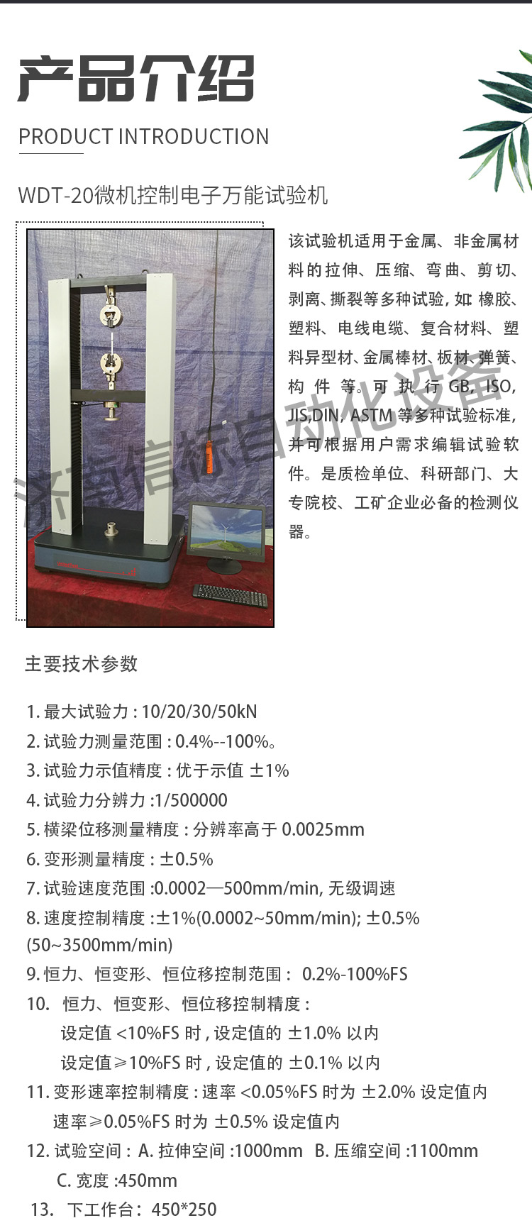 壓電晶體抗壓強(qiáng)度專用試驗(yàn)機(jī)技術(shù)指標(biāo)